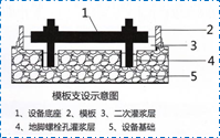 (1).二次灌漿時,模板與設備底座四周的水平距離宜控制在100mm左右,模板頂部標高應不低于設備底座上表面50mm;